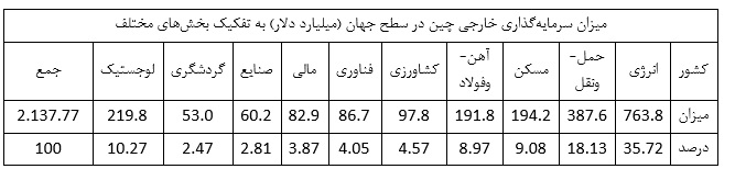 | میزان سرمایه گذاری خارجی چین در سطح جهان (میلیارد دلار) به تفکیک کشورها | |||||||||||