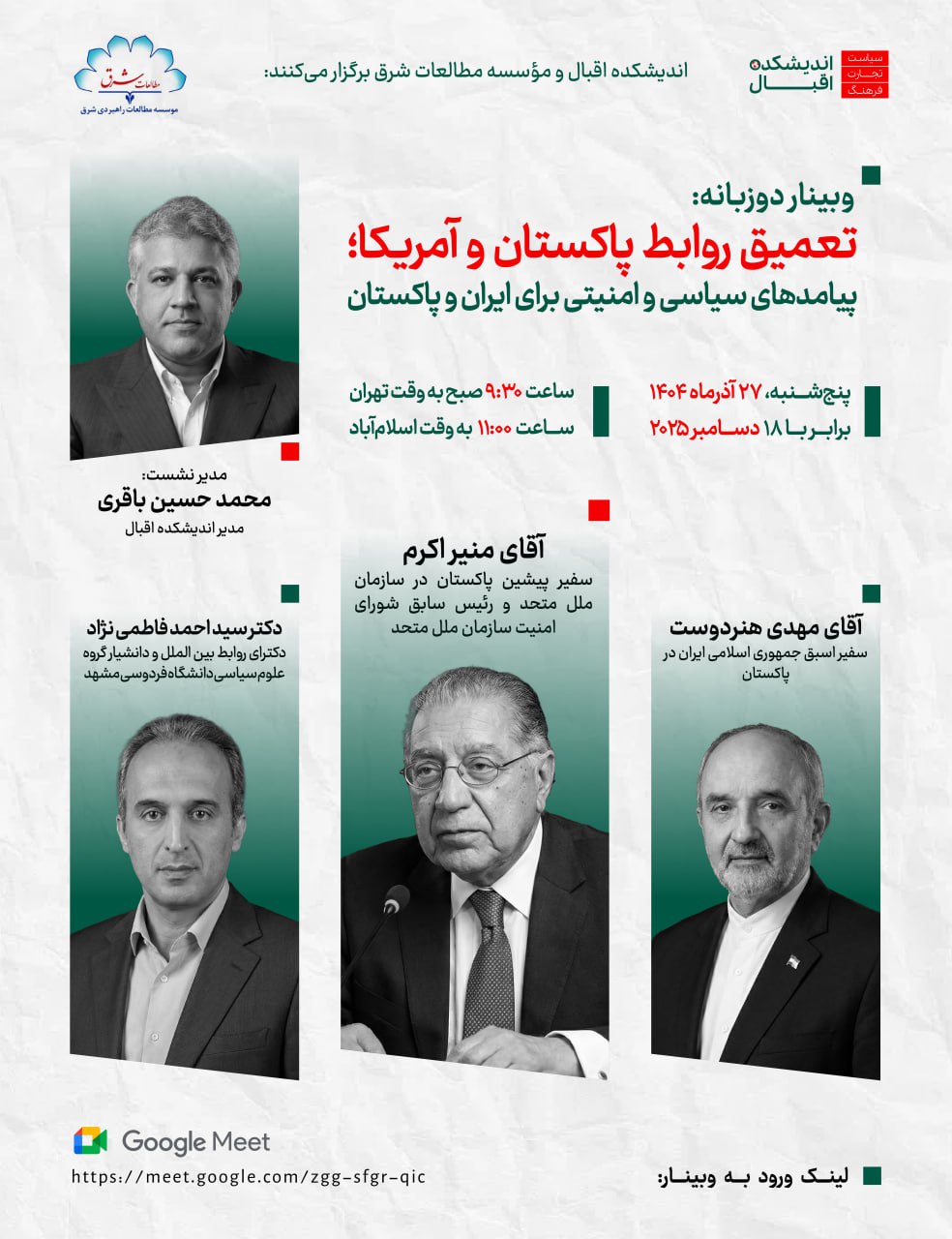 وبینار «تعمیق روابط پاکستان و آمریکا؛ پیامدهای سیاسی–امنیتی برای ایران و پاکستان»